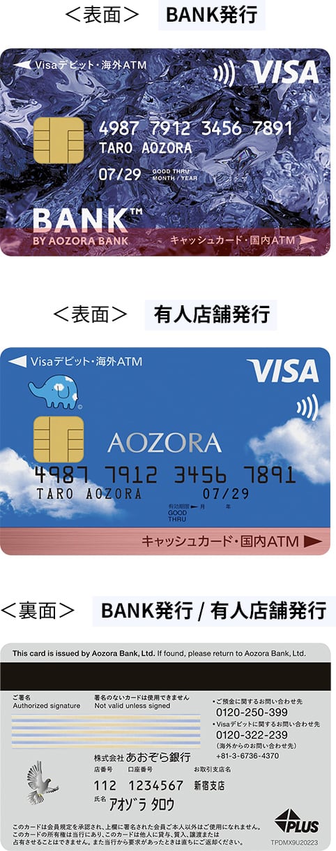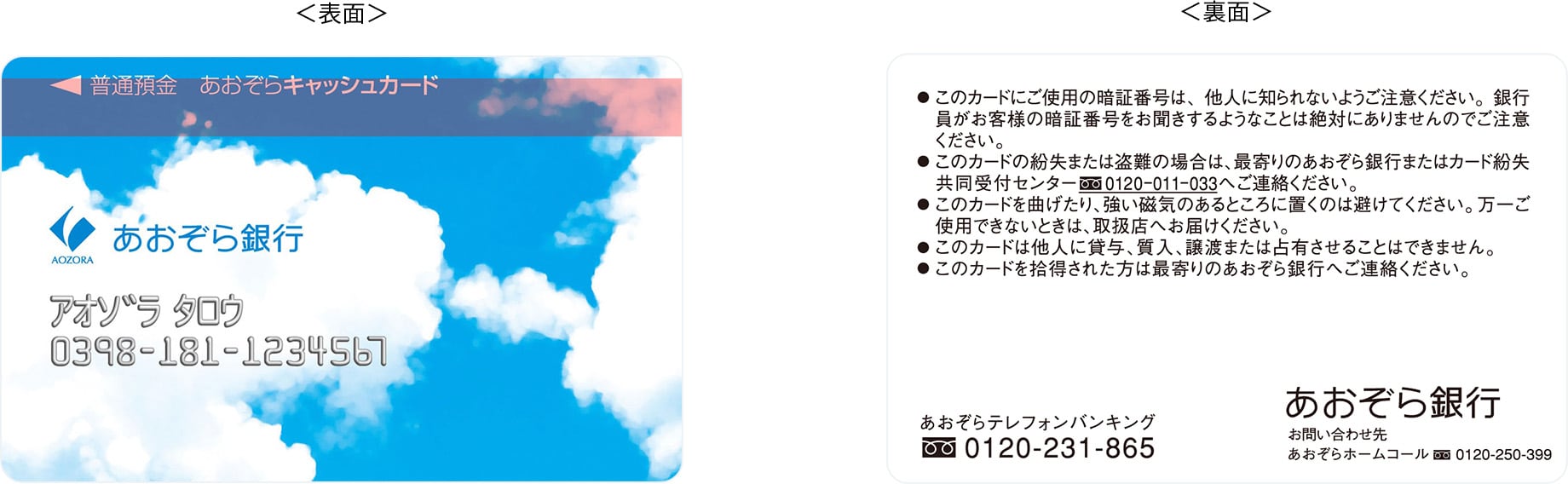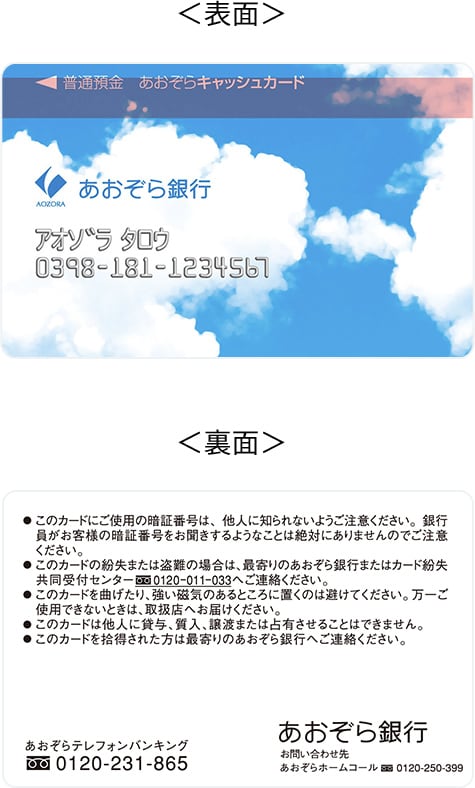 - 磁気ストライプは、カード表面で「普通預金 あおぞらキャッシュカード」と表記されている赤帯の位置にあります。