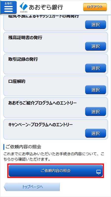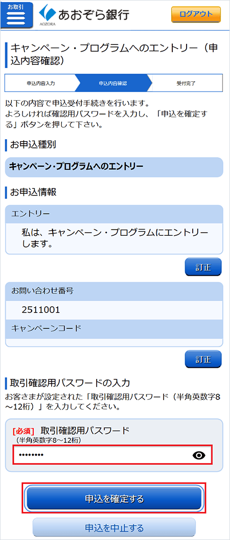 口座開設完了後、インターネットバンキングからキャンペーンにエントリー