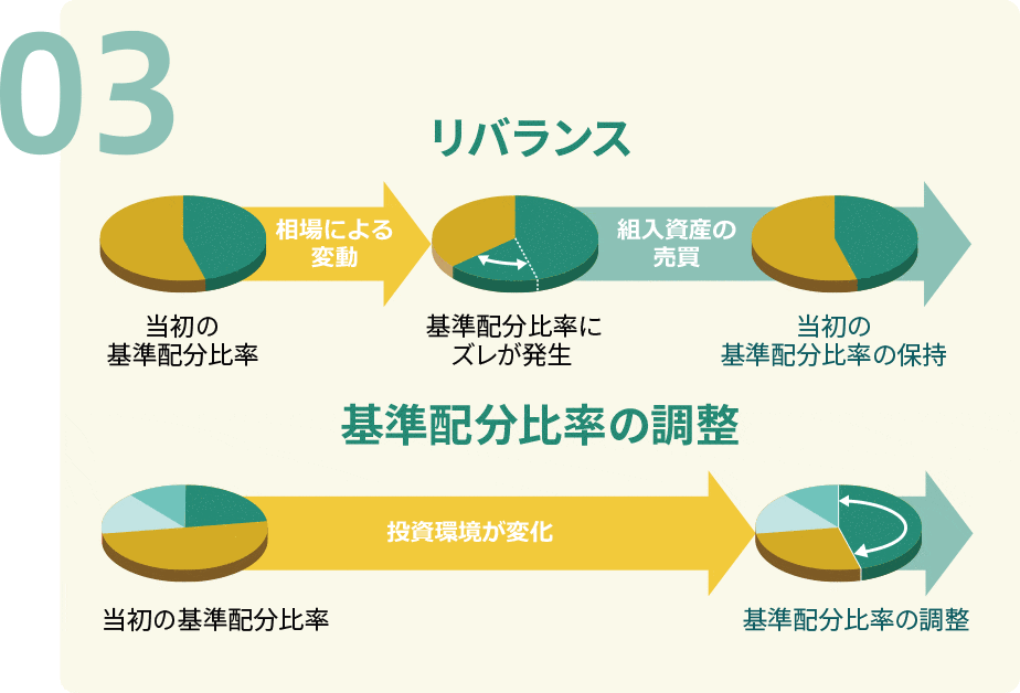 時価の変動や投資環境の変化に応じて、お客さまのご資産のメンテナンスを行います。