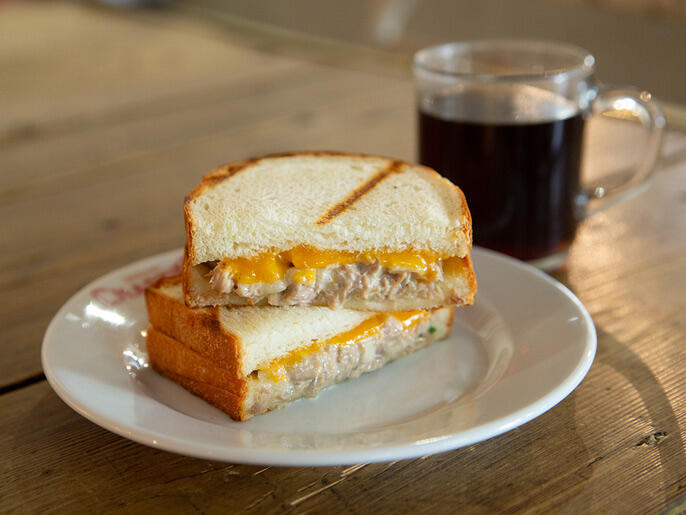 「調理室池田」のツナメルトサンドと日替わりシングルオリジンコーヒー