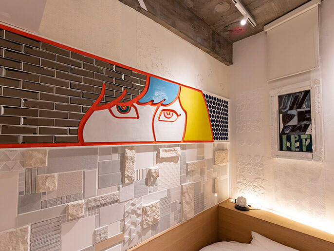 なぜなら、一般的なアートホテルが既に完成している箱(部屋)にアート作品を飾るのに対し、『BnA_WALL』では部屋の床や壁の素材選びなど設計段階からアーティストが関わっているから。展示作品、インテリア、小物などの細部にいたるまで世界観が作り込まれています。