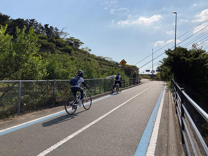 レモン谷のすぐ上には多々羅大橋の出入り口に続く自転車歩行者道が通っていて、サイクリストが風を切って走り抜けていきました。
