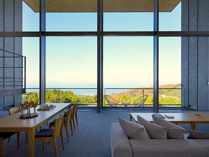 愛媛県・松山市街から車で約30分。瀬戸内海を見下ろす高台に建つのが「瀬戸内リトリート青凪」です。世界的な建築家・安藤忠雄が設計したという特別な空間で、豊かな自然に囲まれながら過ごすことができるホテルの魅力をご紹介します。