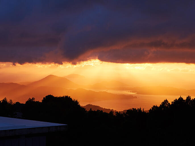 夕暮れ時には額縁のように切りとられた美しい瀬戸内海の景色が現れます。