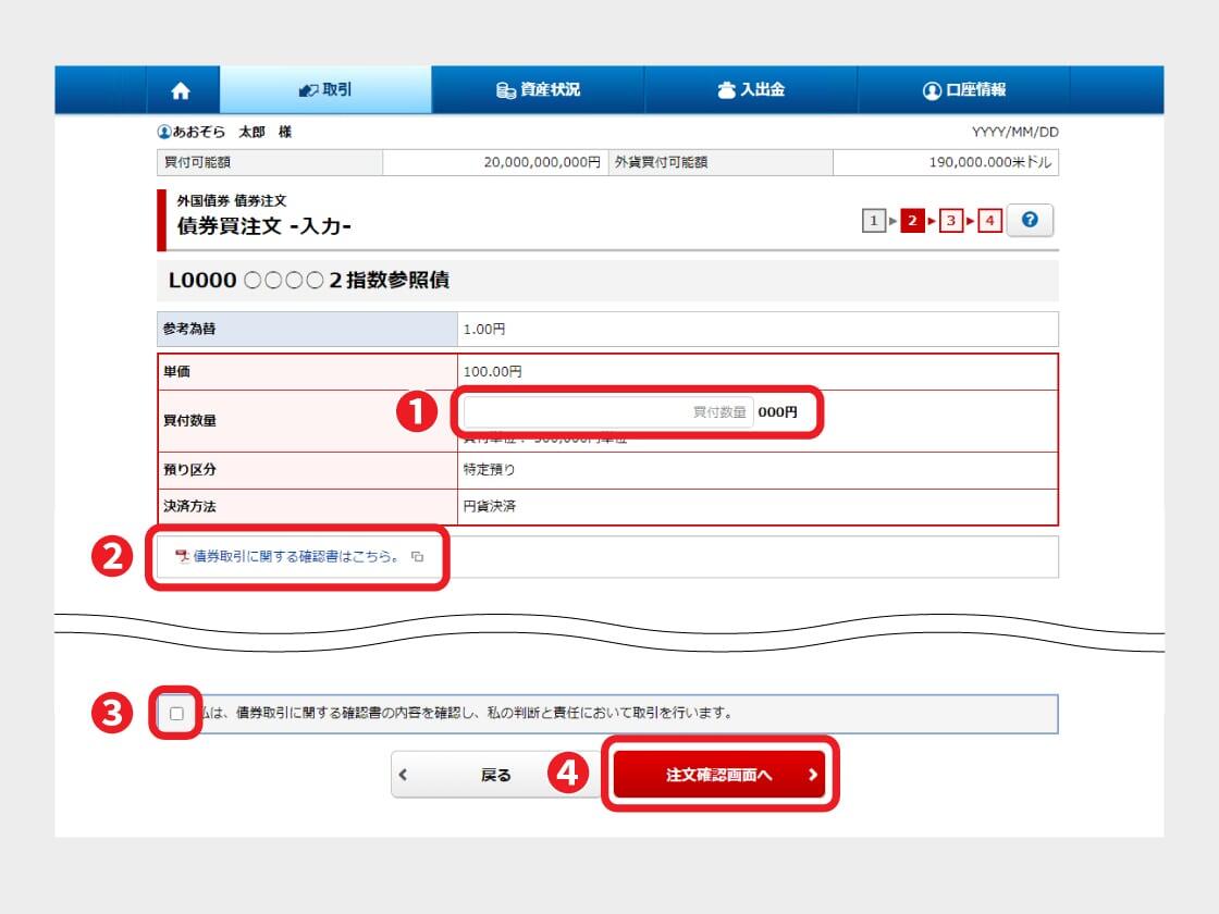 ※あおぞら証券インターネットトレードでは国内債券(信託社債)と外国債券(仕組債)をご注文いただけます。本ページでは外国債券(仕組債)の購入手順をご紹介いたします。