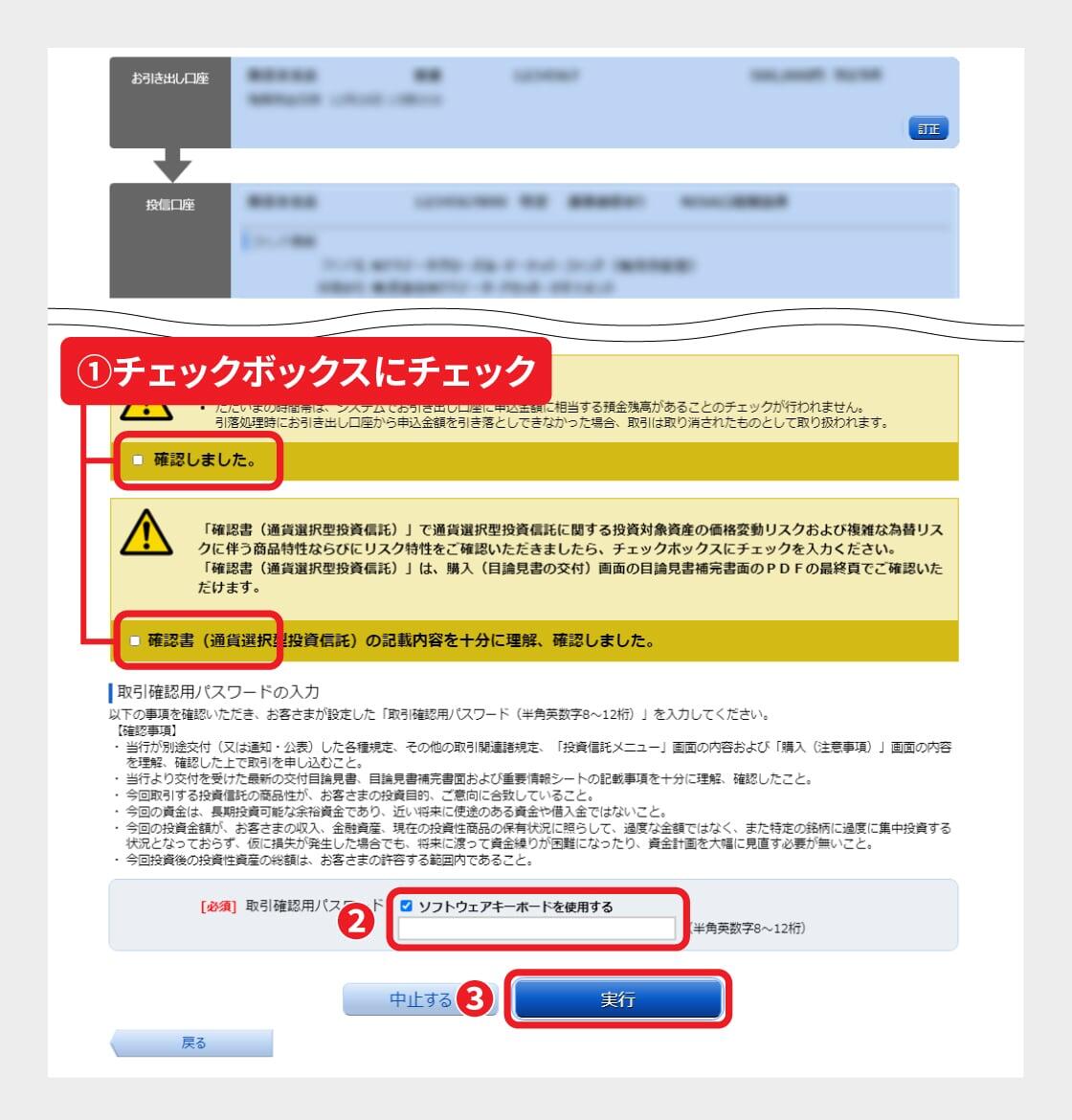 ①取引内容を確認し、チェックボックス□にチェックを入れる