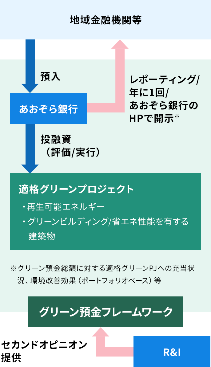 グリーン預金で調達した資金は、一定の基準を満たす再生可能エネルギープロジェクト及びグリーンビルディングに対する投融資(適格グリーンプロジェクト)に充当します。
